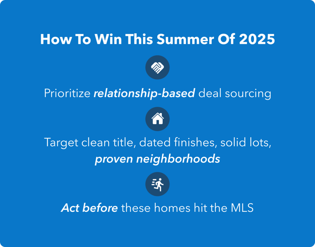 These aren’t 2022-style flipper trades. They’re off-market or estate-condition homes with serious upside — if you move fast and tailor terms to the seller.