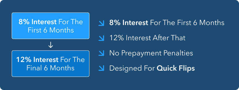 Looking for a smarter way to fund your next real estate investment? Qualified borrowers can access 8% interest for the first six months on a 12-month term, adjusting to 12% for the remaining six months.